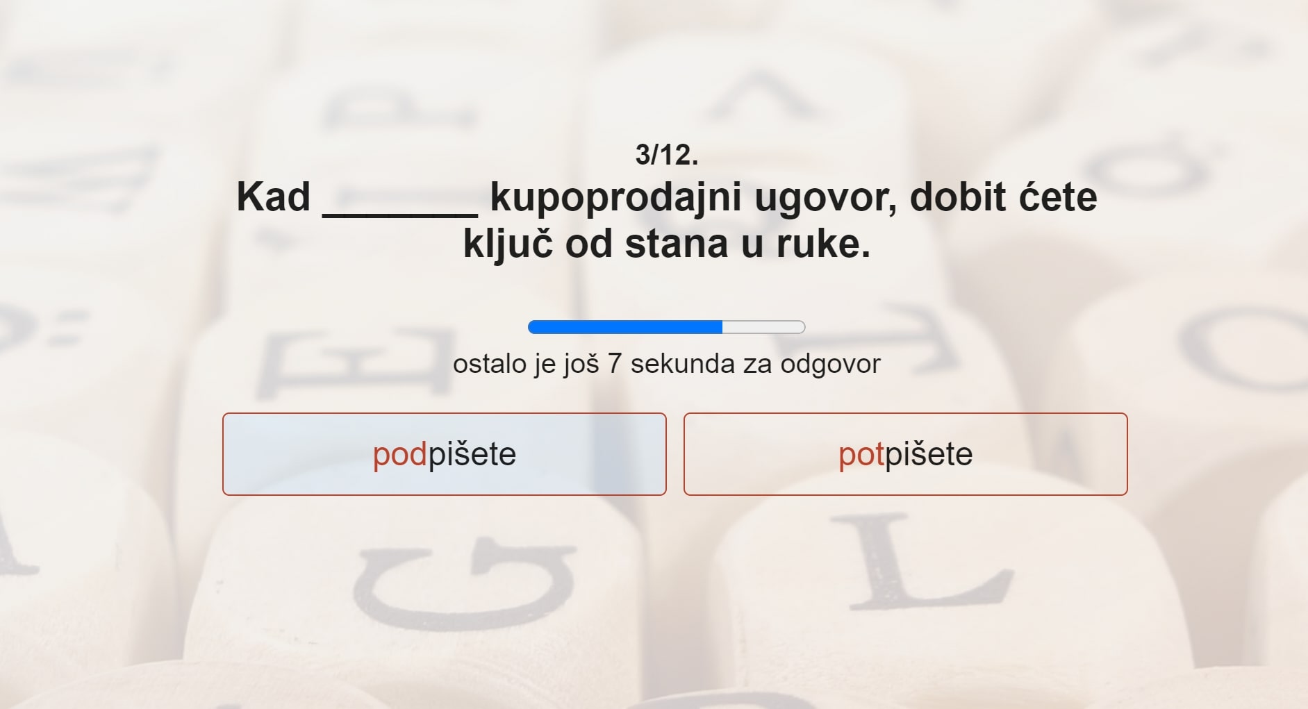 U kvizu će se pojaviti rečenica s prazninom. Za prazninu treba odabrati glagol koji ima pravilan prefiks ...
