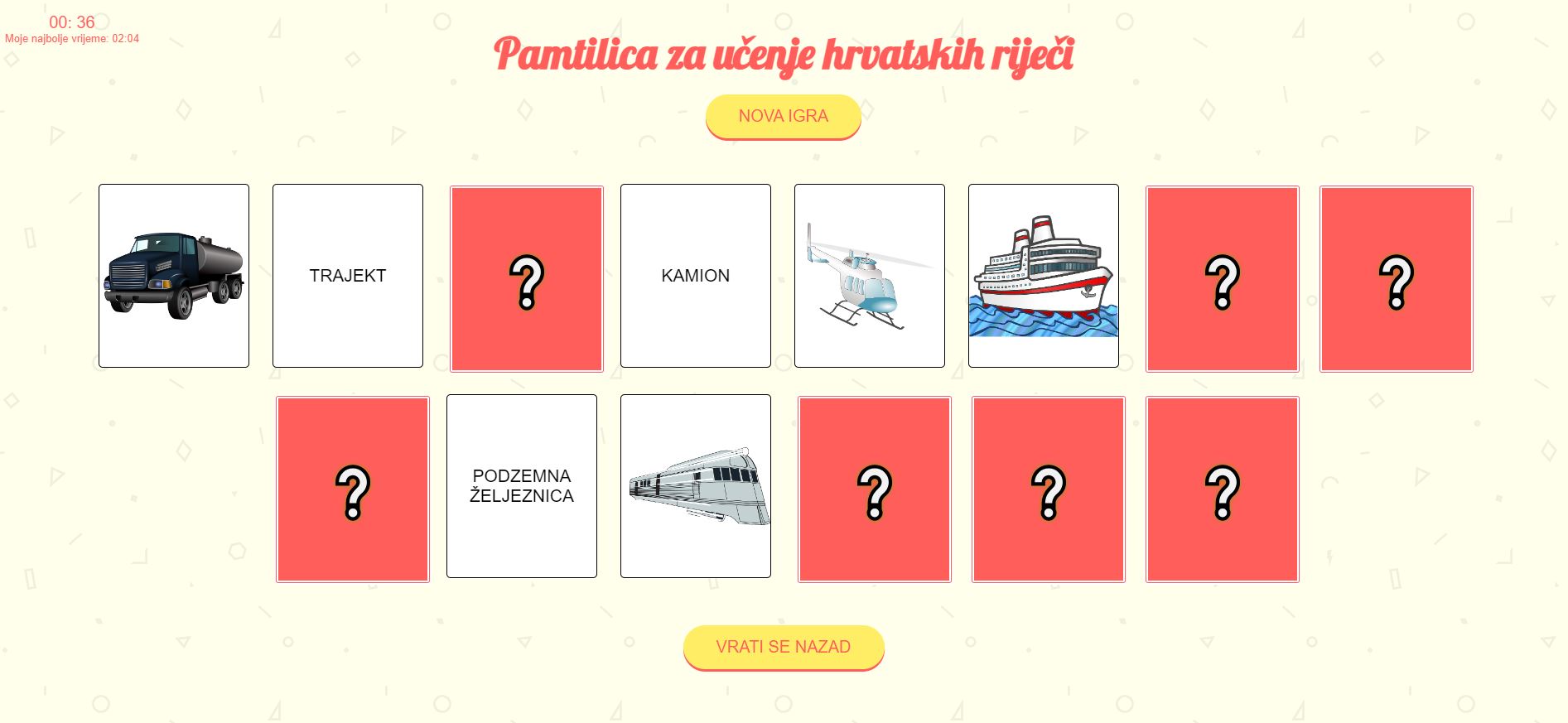 Pamtilica u kojoj se sparuju slike s nazivima na hrvatskome jeziku. Igrači mogu proizvoljno birati različite sadržaje za sparivanje ...