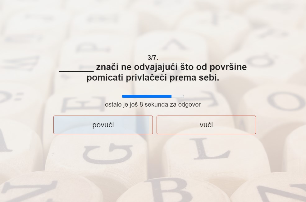 U kvizu će se pojaviti definicija s prazninom. Treba odabrati odgovarajući glagol kako bi se dobila pravilna definicija ...