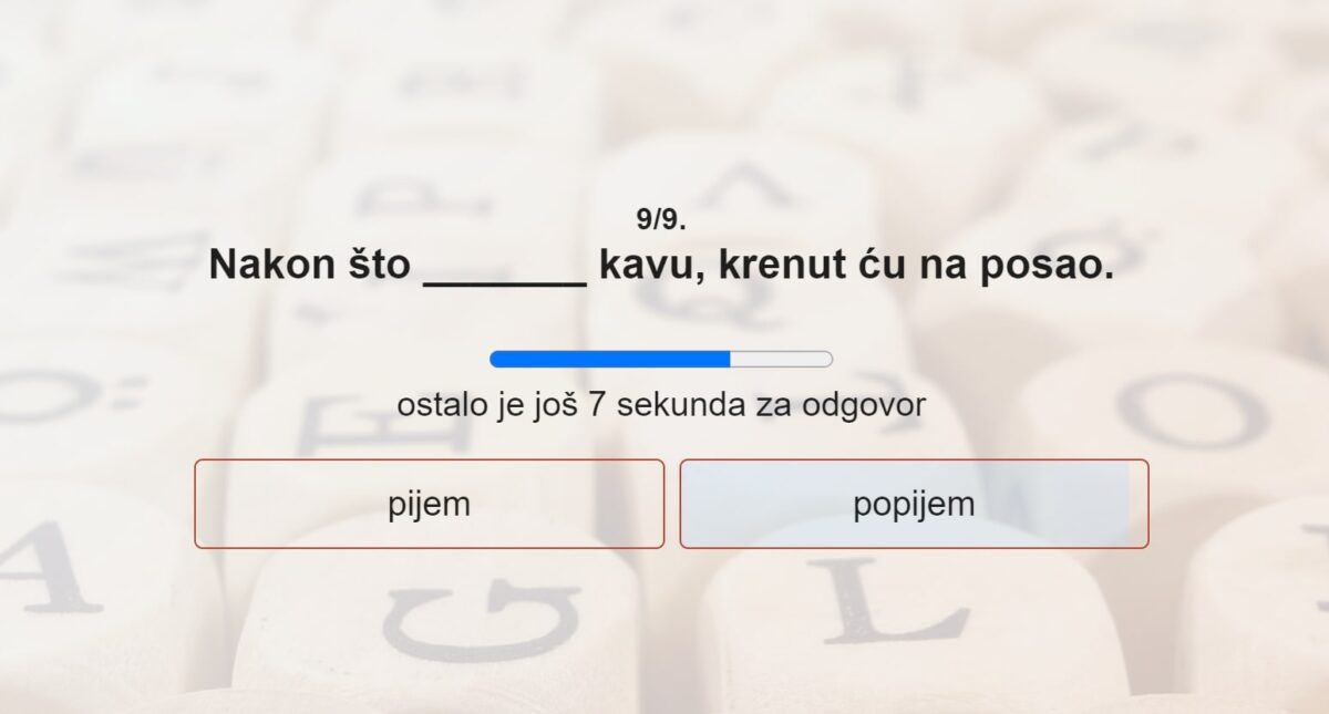 U kvizu će se pojaviti rečenica s prazninom. Za prazninu trebaš odabrati pravilan glagol.